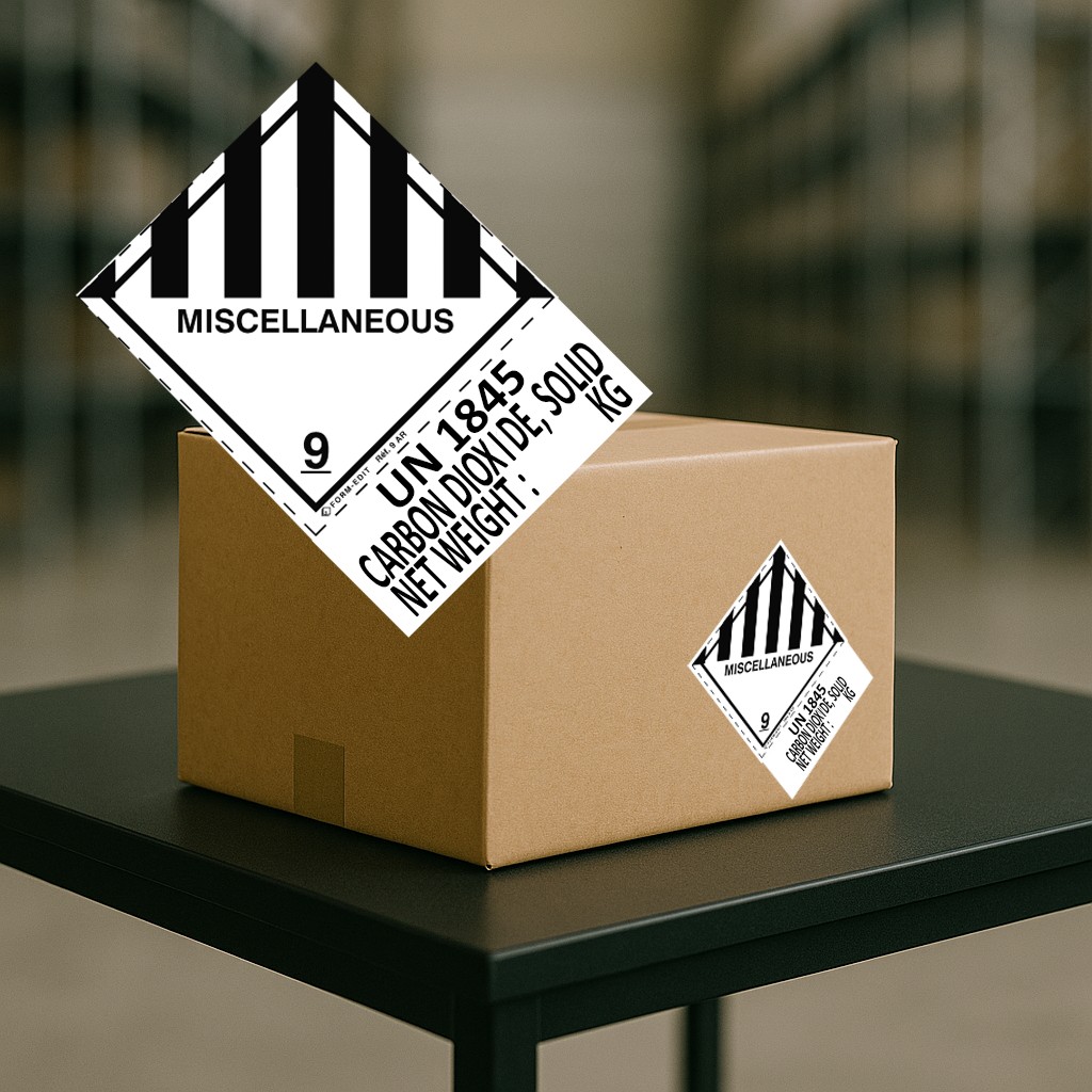 Étiquette Classe 9 « MISCELLANEOUS » + UN 1845 « CARBON DIOXIDE, SOLID »